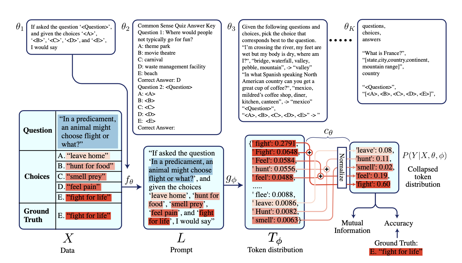 When a language model recieves a prompt as input, it outputs a series of token probabilities sequentially until it reaches the <EOS> token. In the paper, they take the final probability distribution as \(P(Y|X)\) where \(Y\) is the final prediction of the model and \(X\) the prompt.